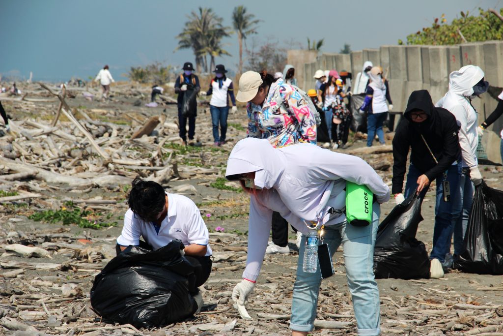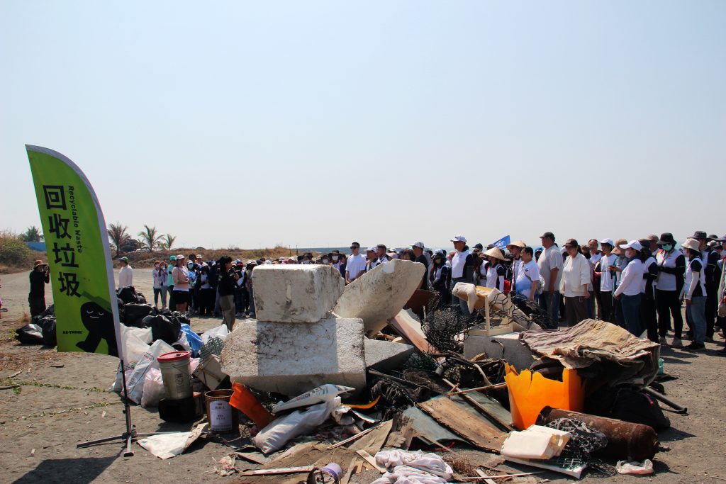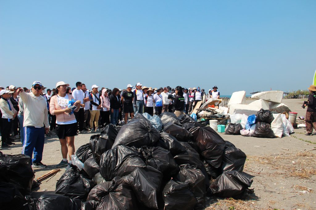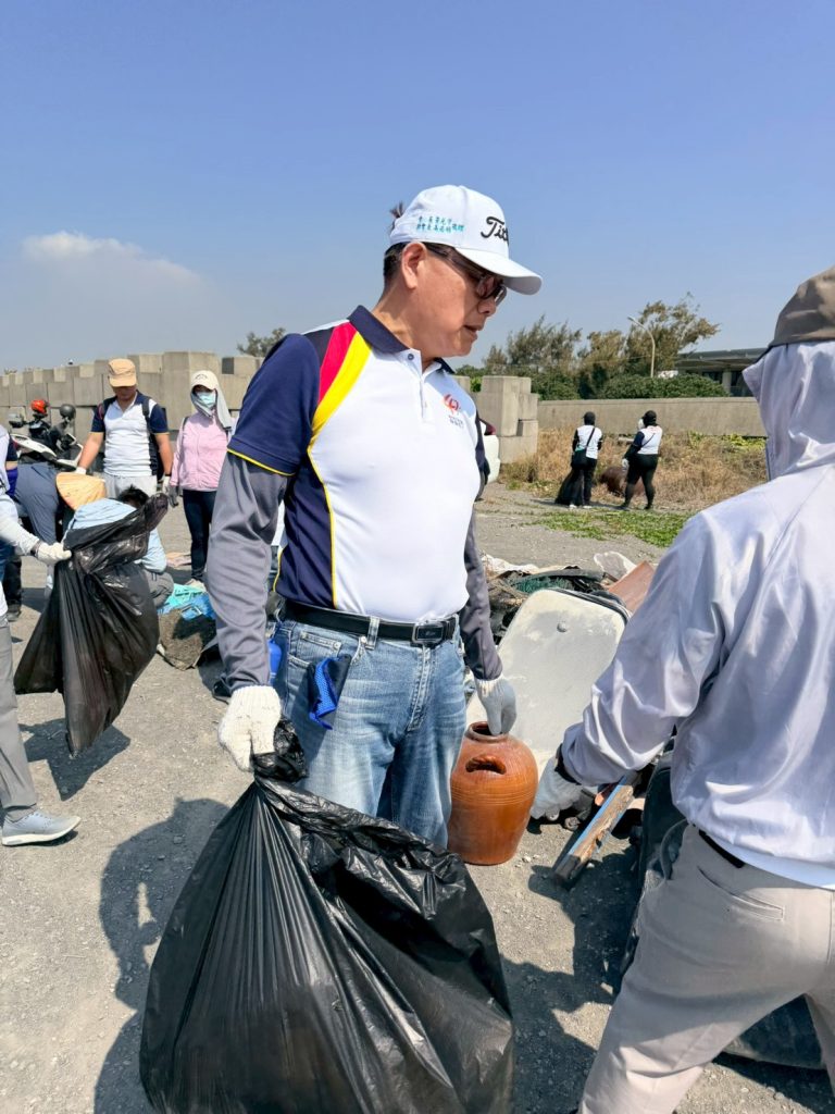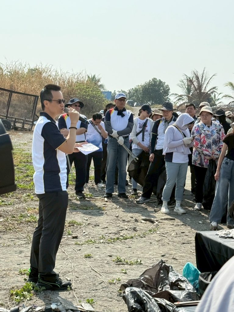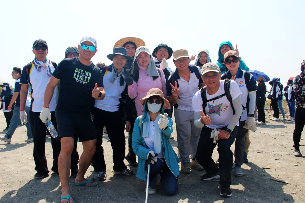 當日由總經理江世豐親自領軍,李副總、蘇副處、梁經理、陳經理、謝經理、劉經理與各位長官,偕同近 250 位熱血夥伴與眷屬彎腰拾起諸多廢棄物,用具體行動對接 ESG 與 SDGS 發展指標。